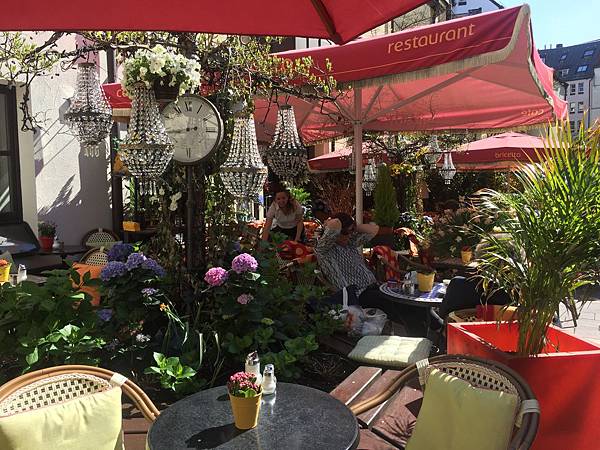 在慕尼黑市區走著走著看到這家花叢林餐廳